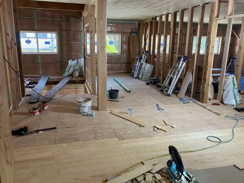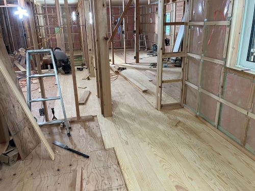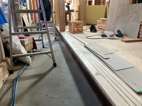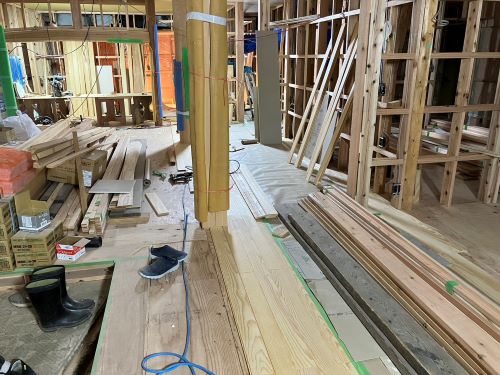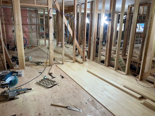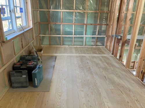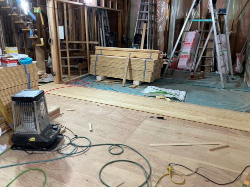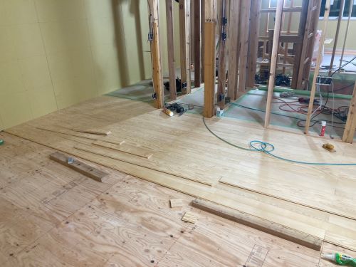 1階の床張りが進みました。