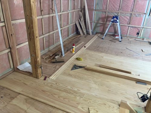 2階の床張りがもう一息です。