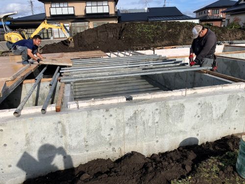 基礎断熱枠の取り付けが進みました。