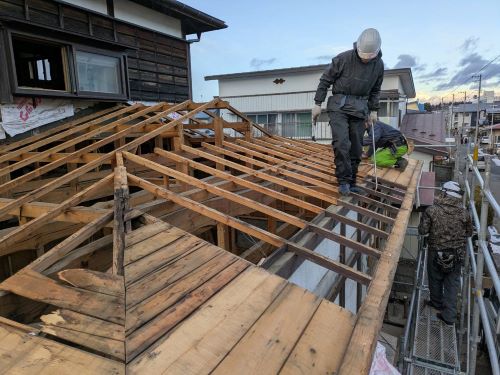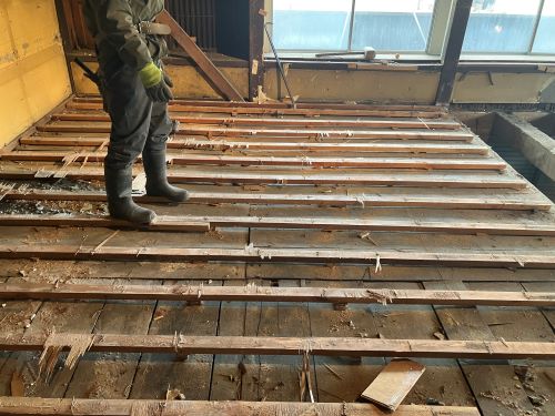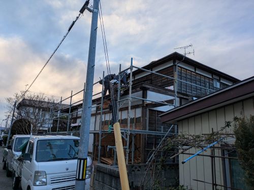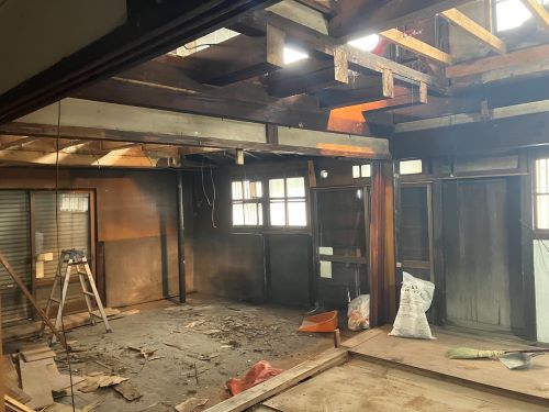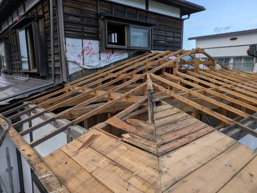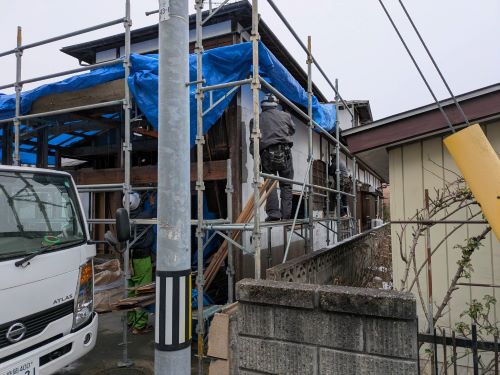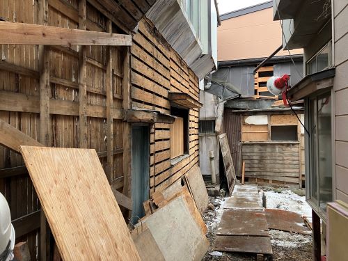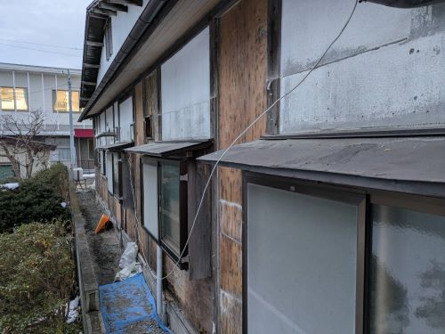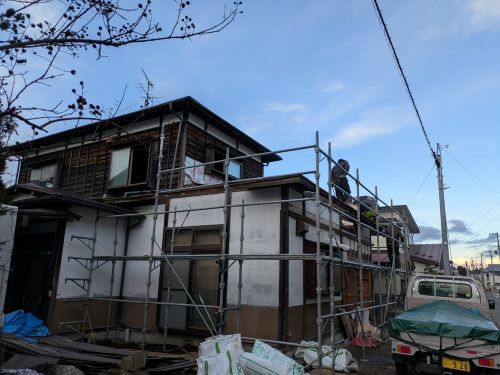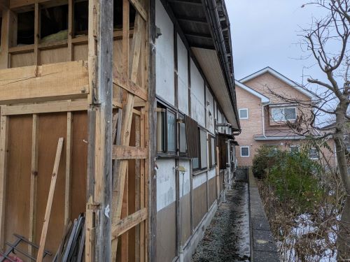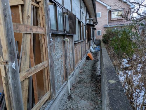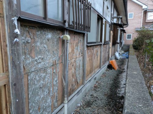 北側の外壁取り外しを進めています。下見板を外すと、モルタル壁が出てきてしまいました。