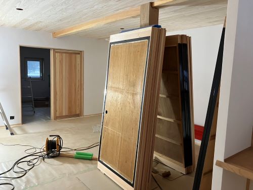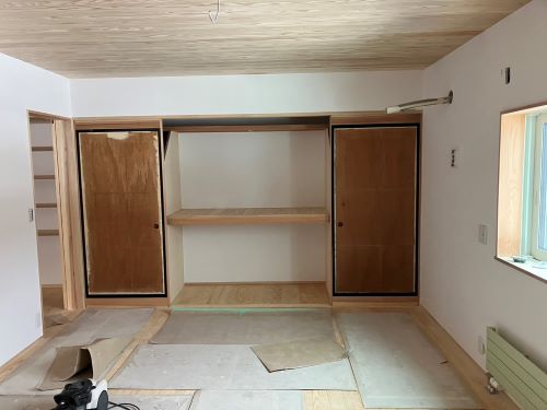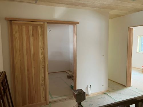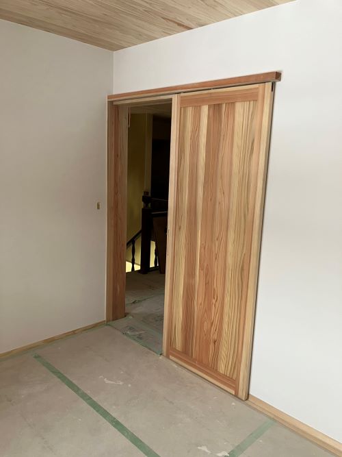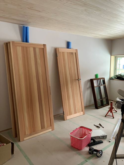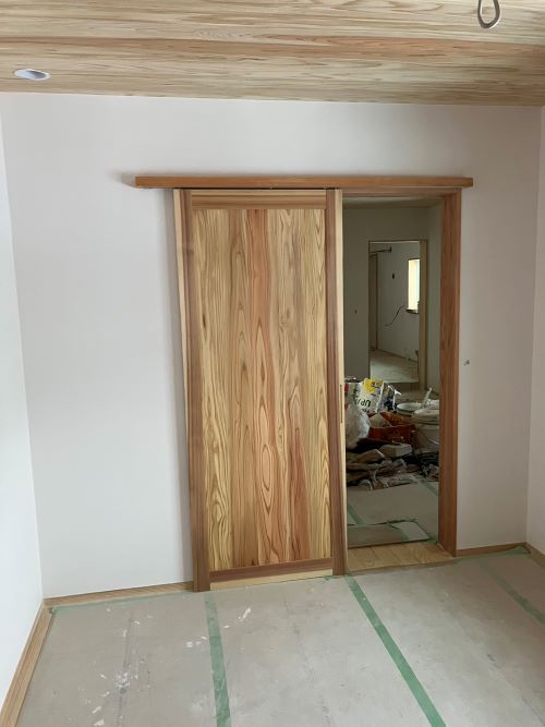 大工造作内装と続いていますが、建具の吊り込みも進みました。