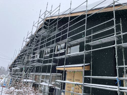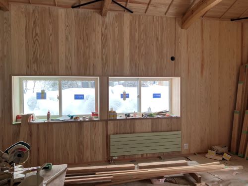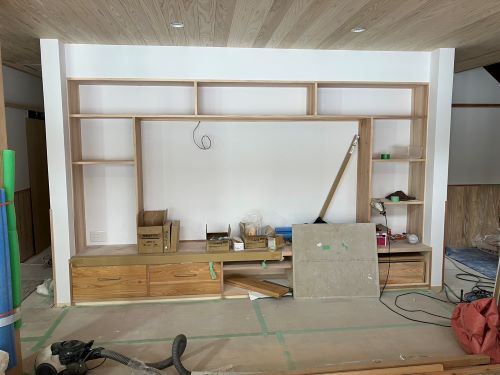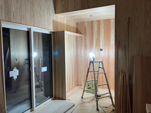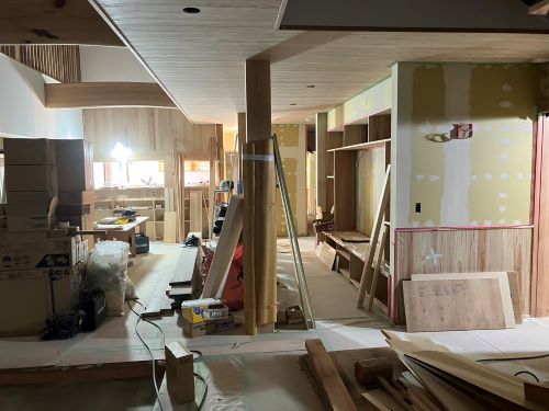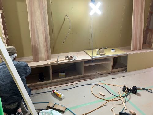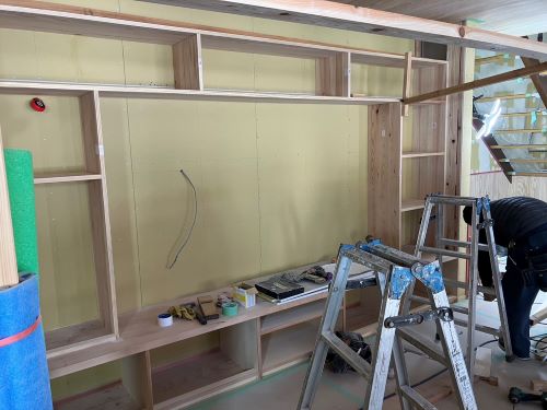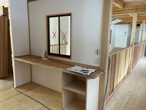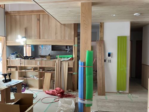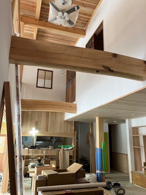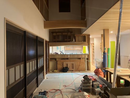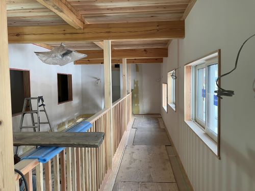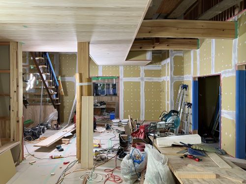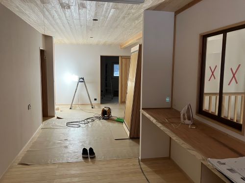 外部は足場も外れて1階の造作も出来てきたので、内装と建具に器具付けが進めば竣工が見えてきます。