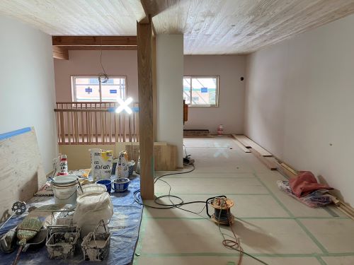 1階はまだ内装工事が途中ですが2階は仕上がってきて掃除を行っていました。