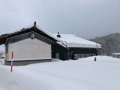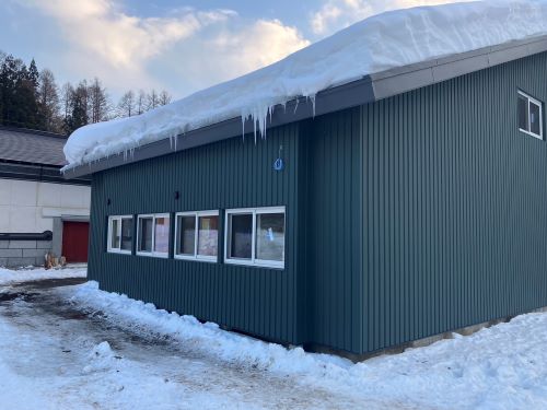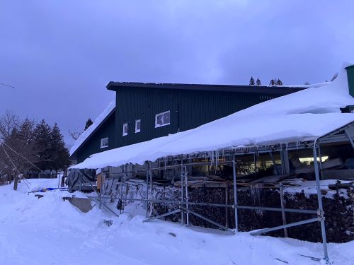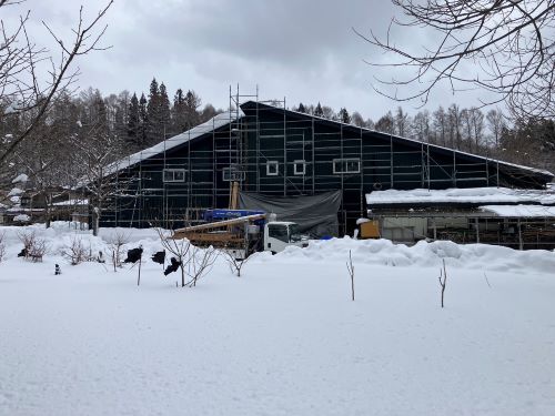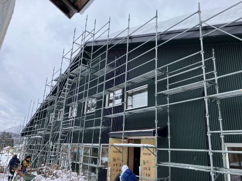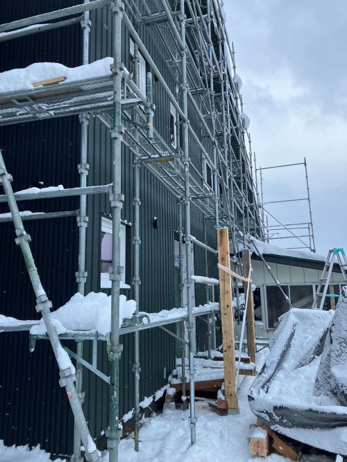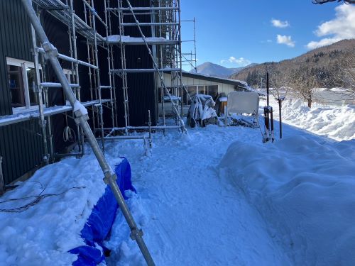 足場が外されました。でも裏側の方は雪が凄くて一度に全ては外せませんでした。
