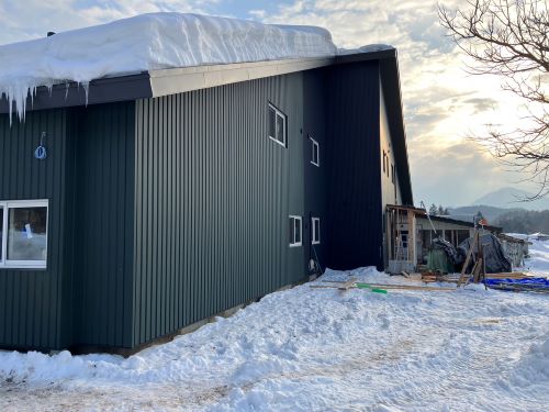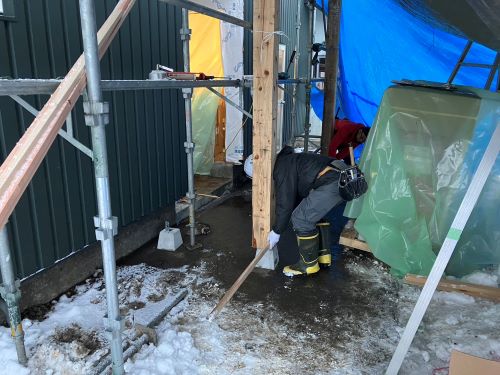 足場がやっと外れたので、っボイラー室の囲い込みを行っています。