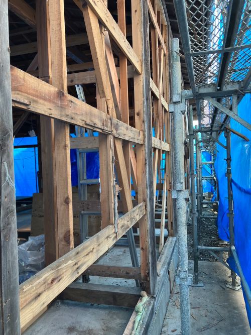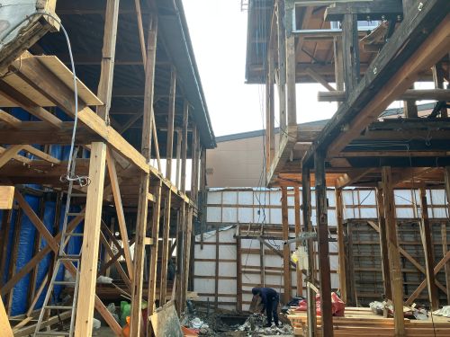 2階屋根の取り外しが進んで解体が大きく進みました。