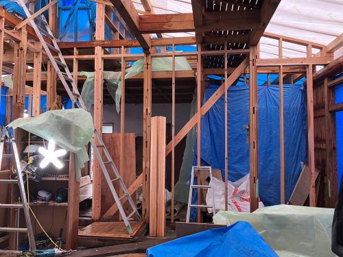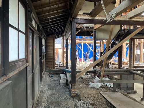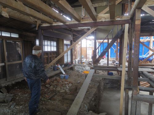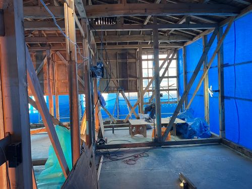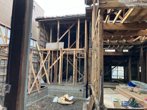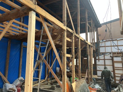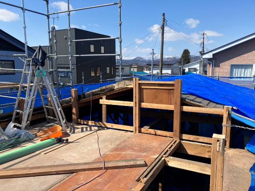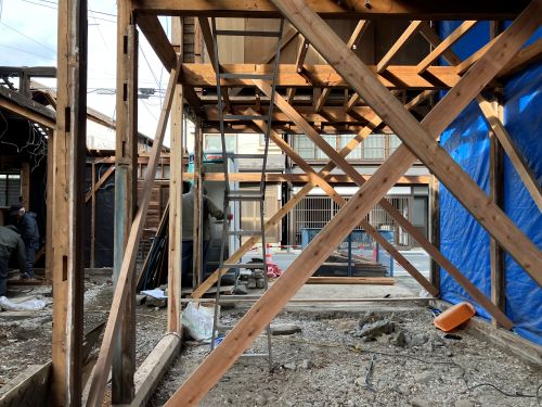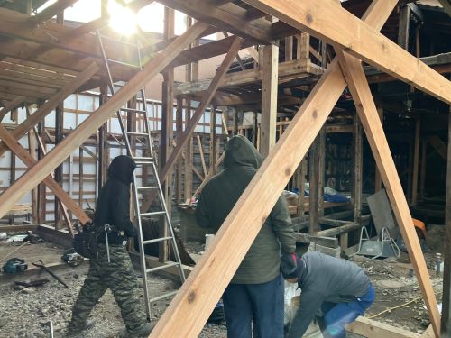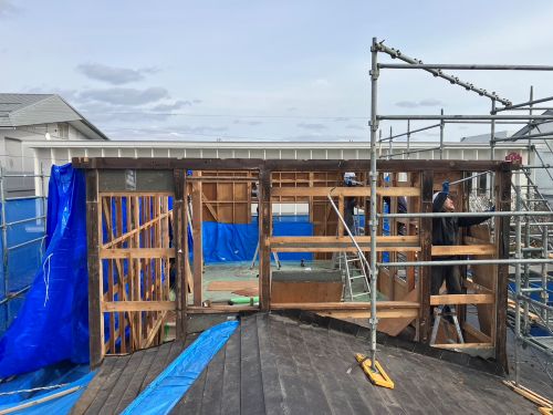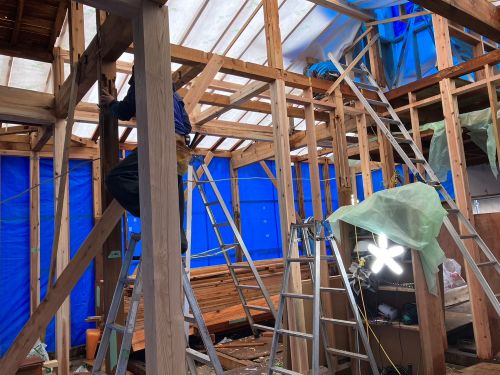 2階を解体減築した部分の構造補強を行いながら屋根を創る準備に向かいます。