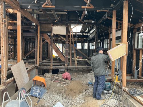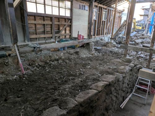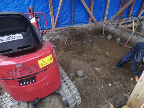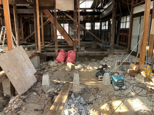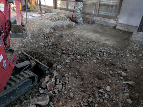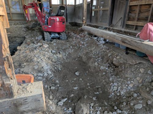 建材取り外しが大方となりました。引き続き基礎工事に入らせていただきます。