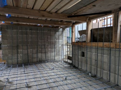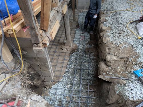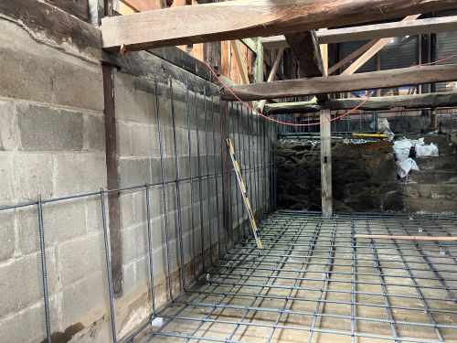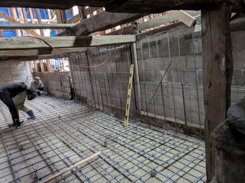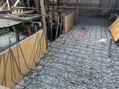 基礎の補強配筋が進みました。来週はコンクリート1回目の打設予定です。