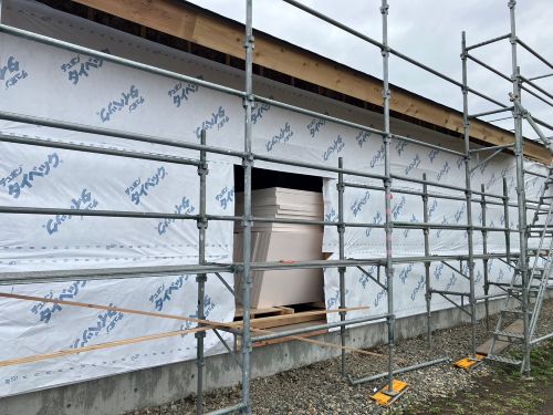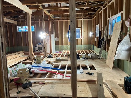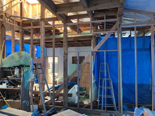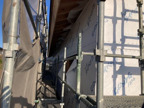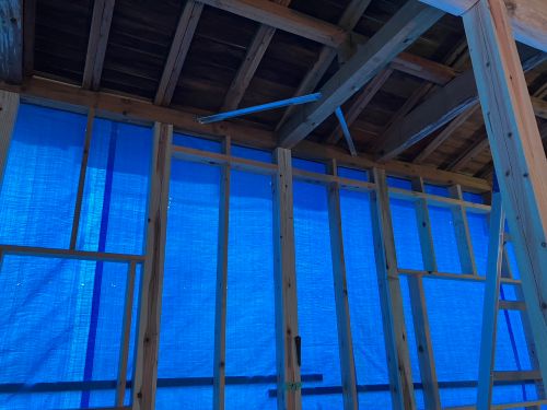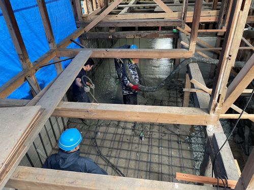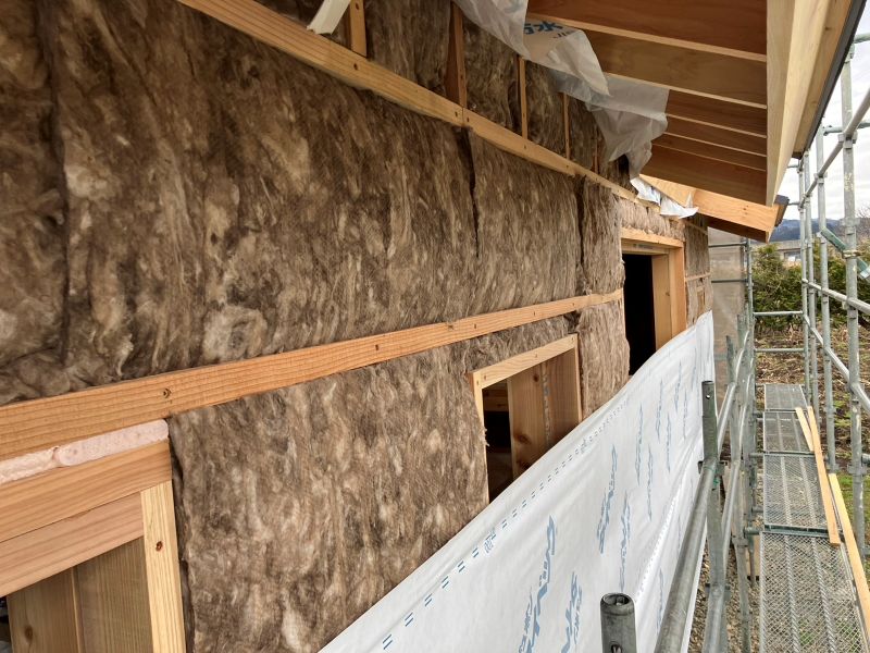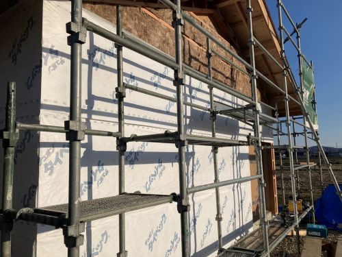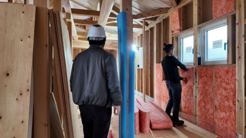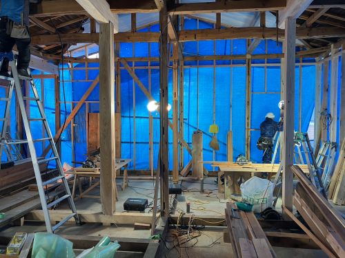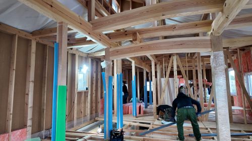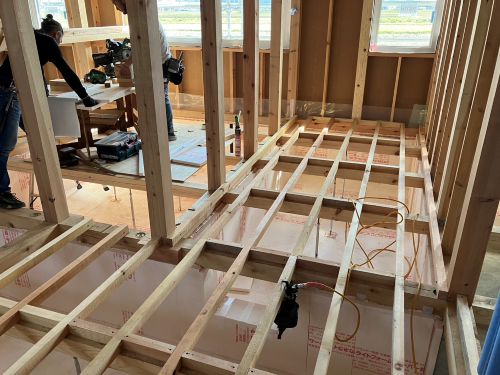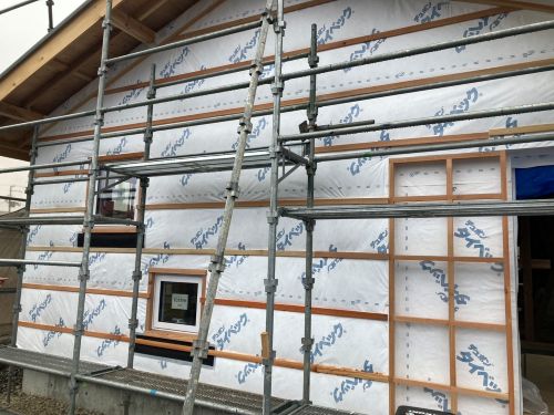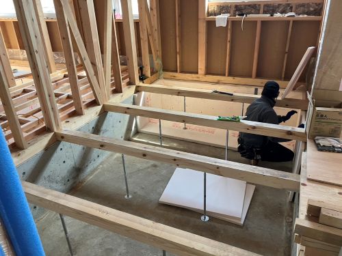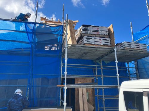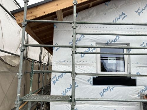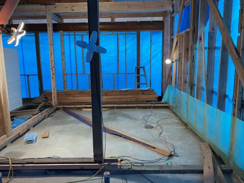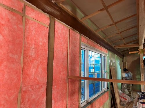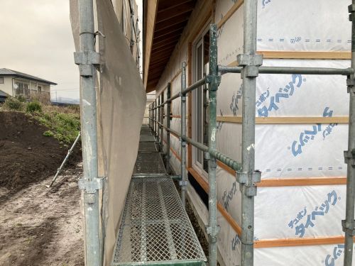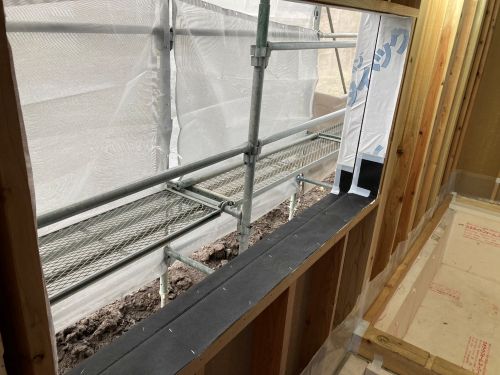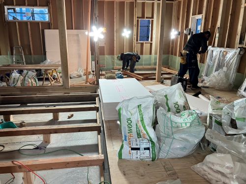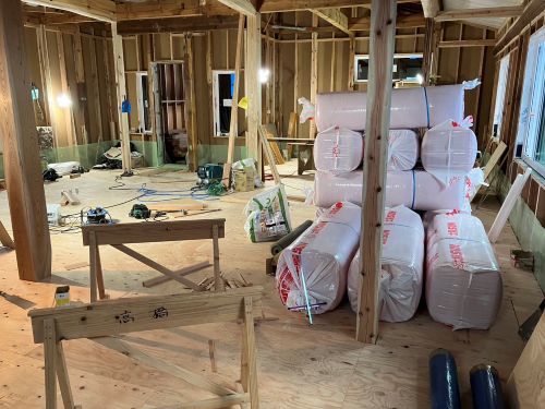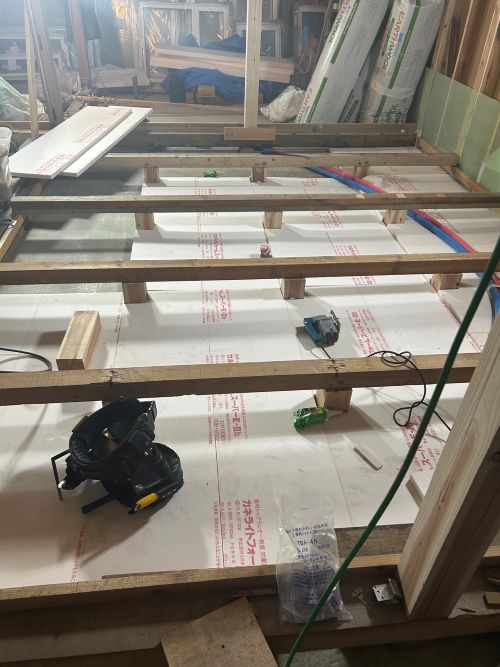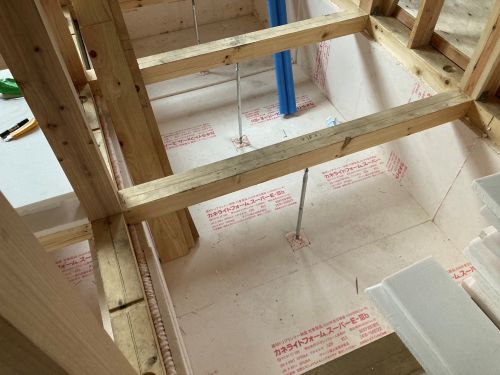 引き続きの負荷断熱工事と雨が降るタイミングでは床下断熱等の工事が進められています。