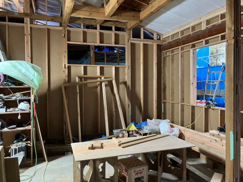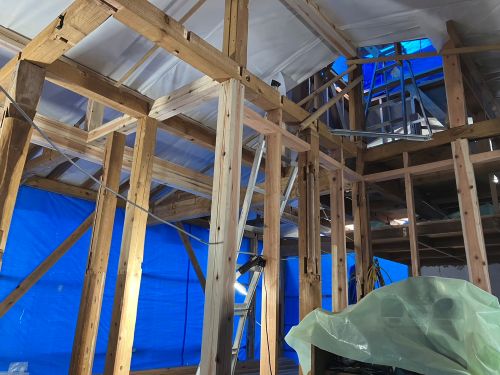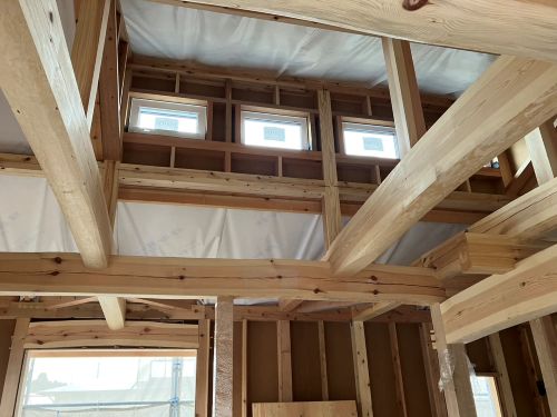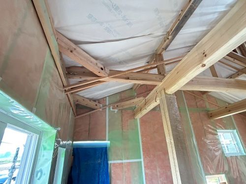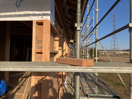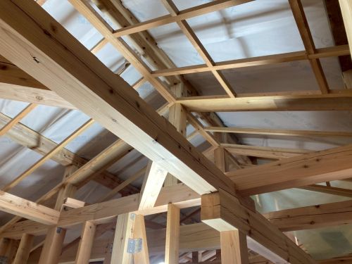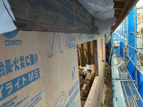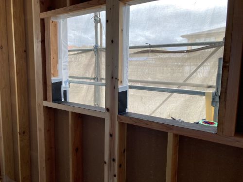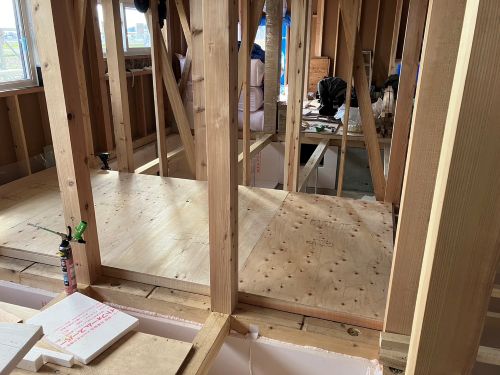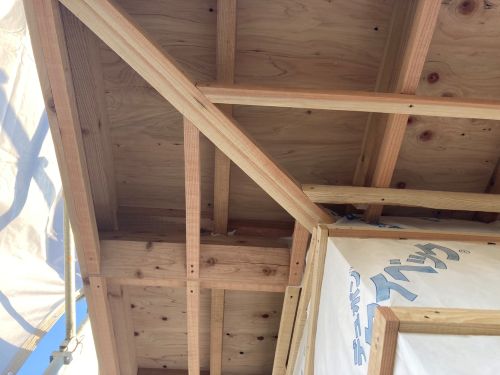 構造面材の張り込みが進むと内部が外と区切られた感があります。