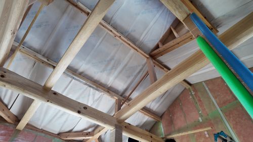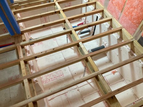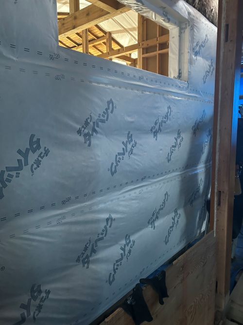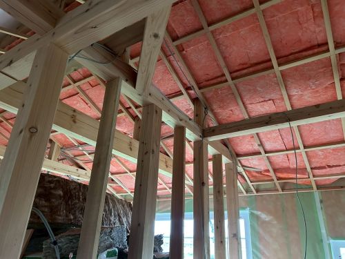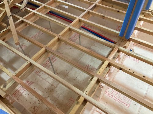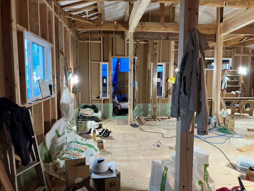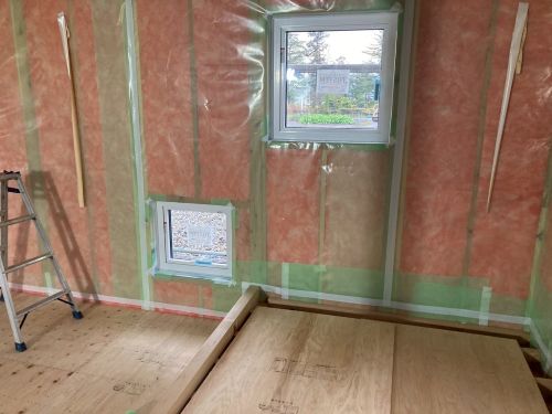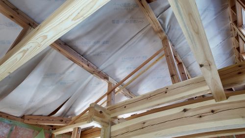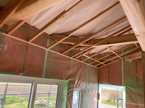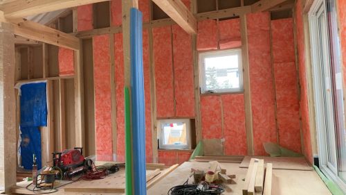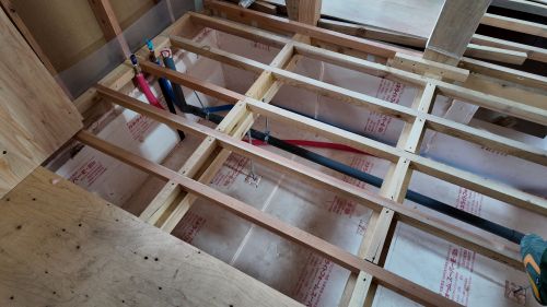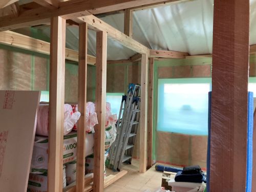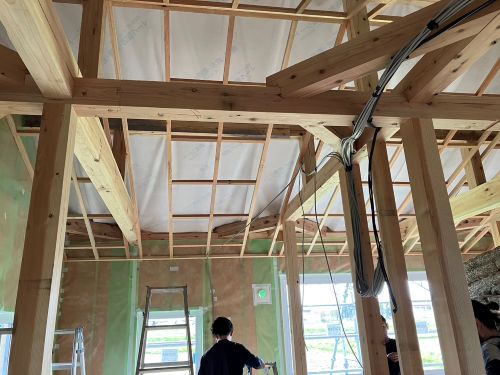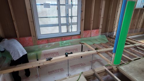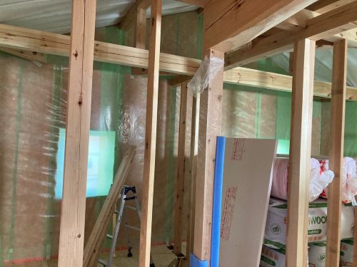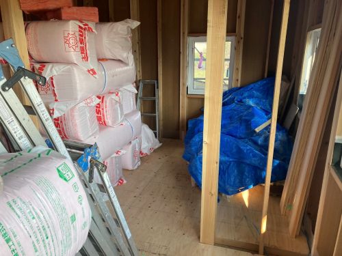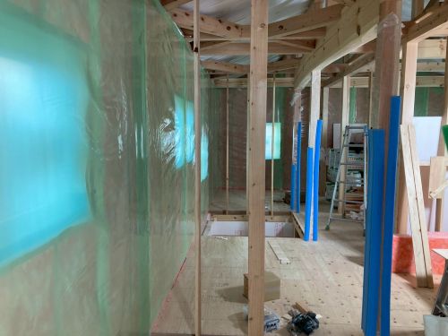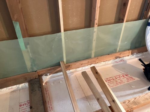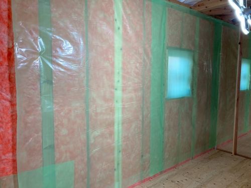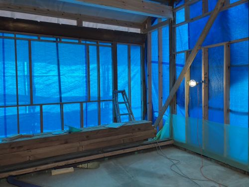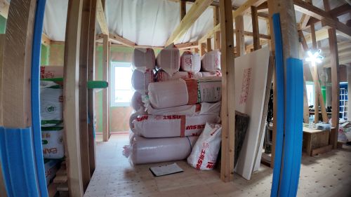 床合板の張り込みも完了して、内断熱充填と防湿シートの張り込みも進みました。