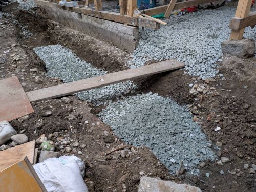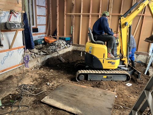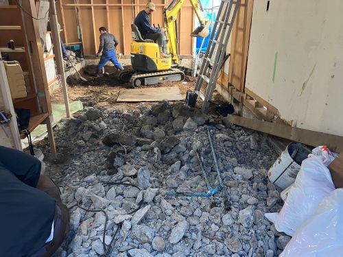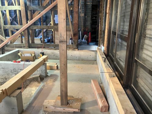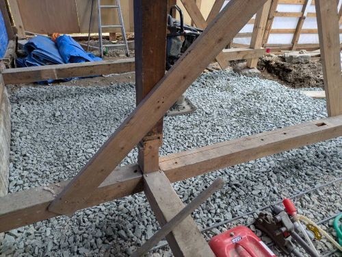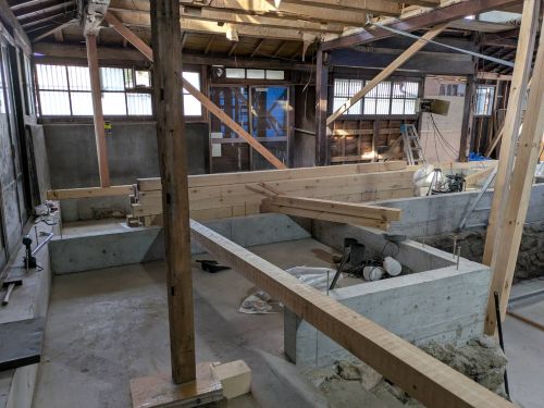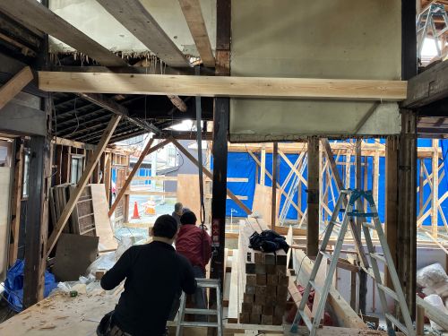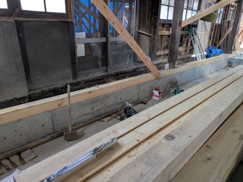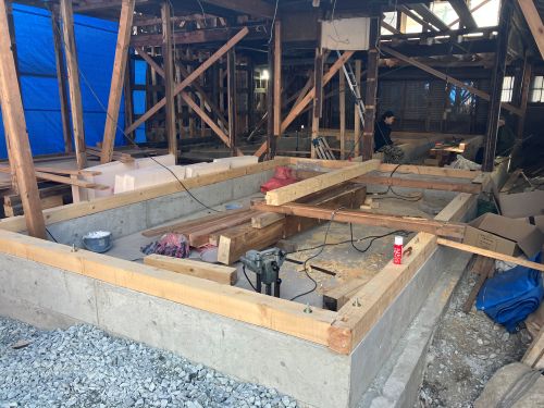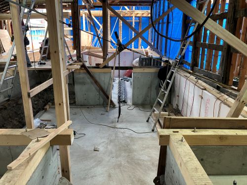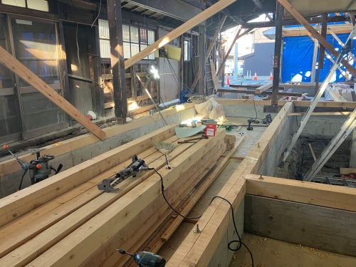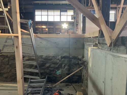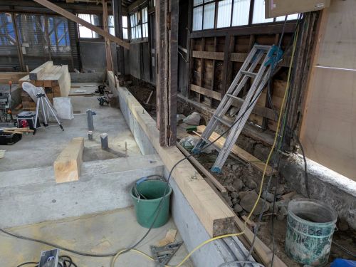 構造補強の準備に入りました。基礎の続きも行われています。