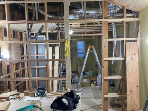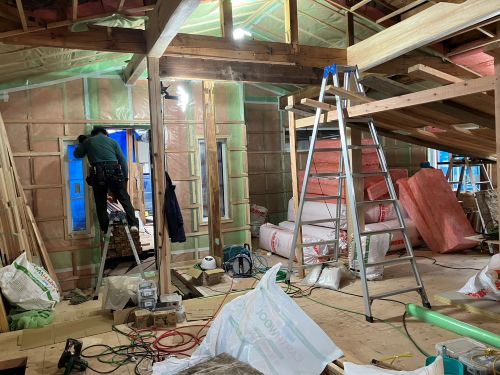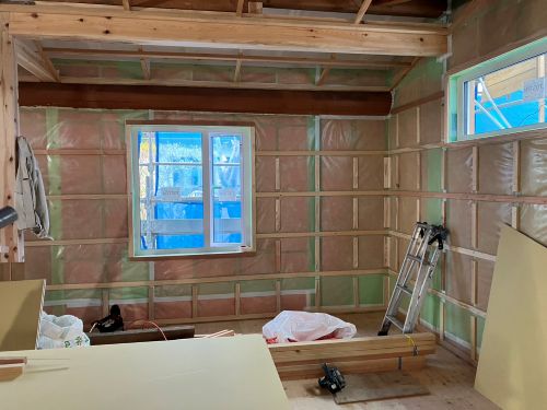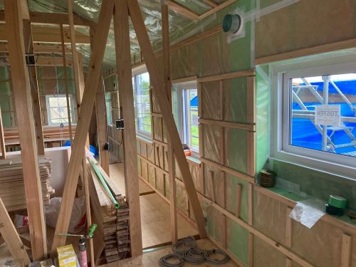 天井断熱も進み壁下地の取り付けも進みました。