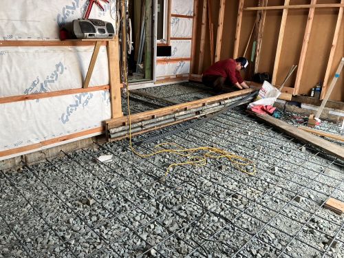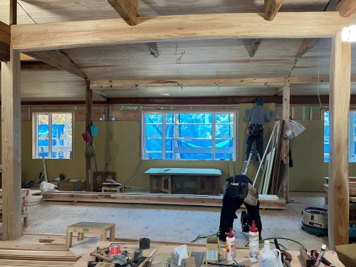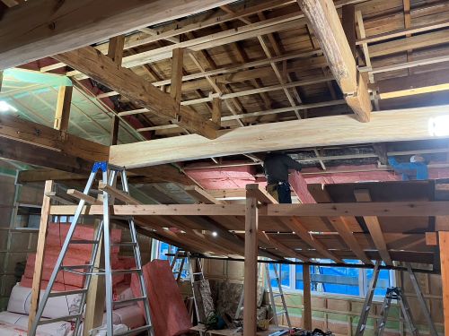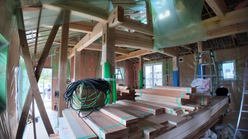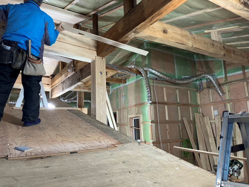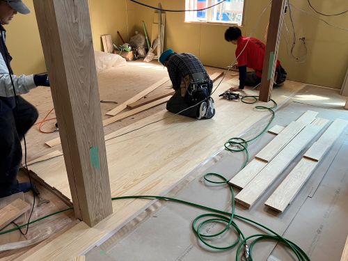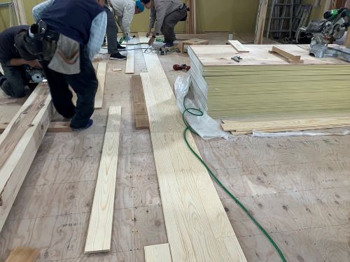外壁工事も進み、床張りも大方です。