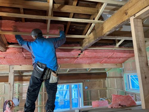 屋根断熱と防湿工事が進みました。
