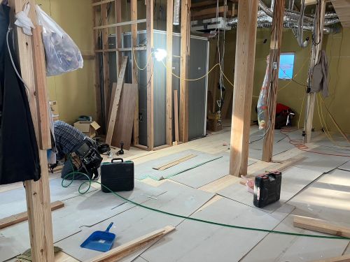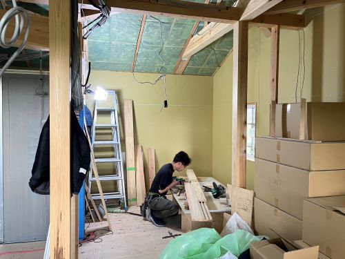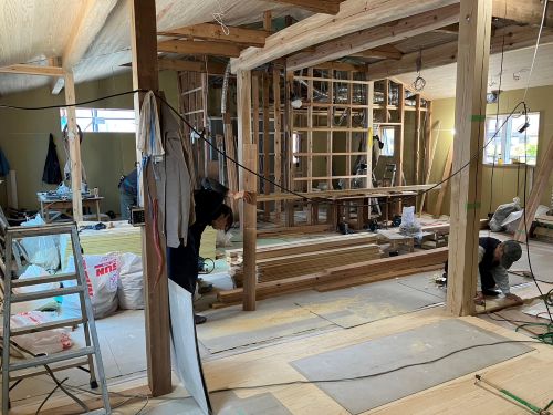 床張りも始まりました。星見室も板張りです。