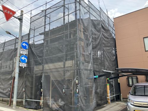 外壁工事が勢いよく進んでいます。