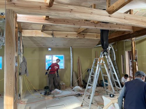 外壁工事を進めています。内部は電気配線が進みました。