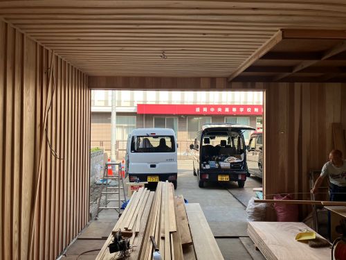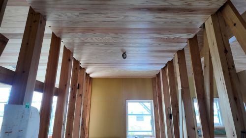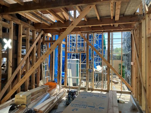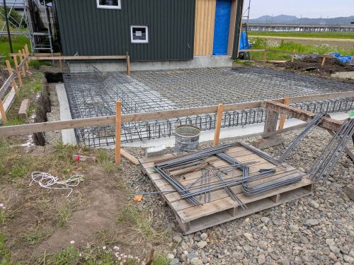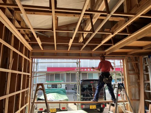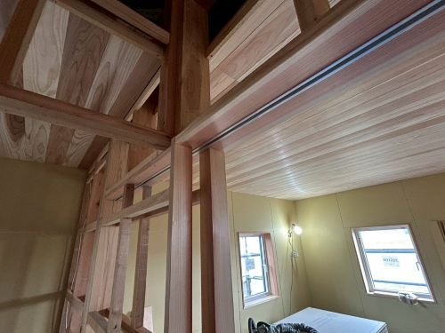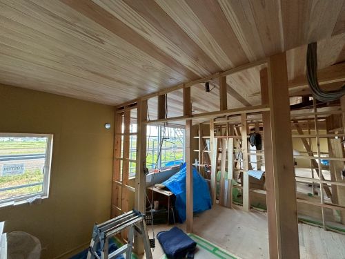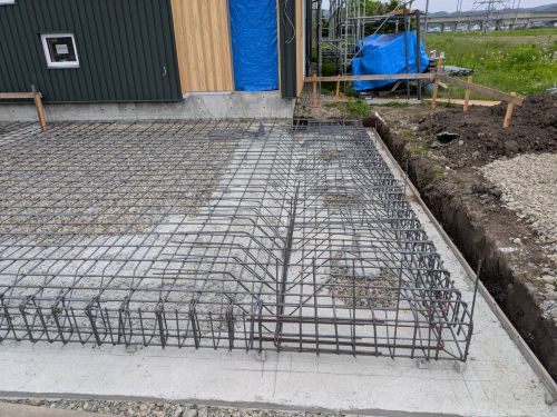 車庫基礎配筋が進み内部は天井下地が出来てきました。