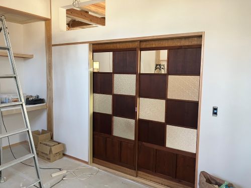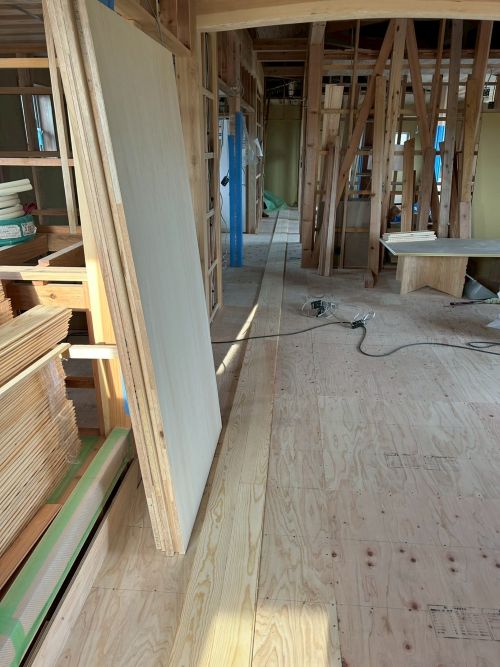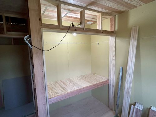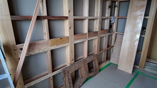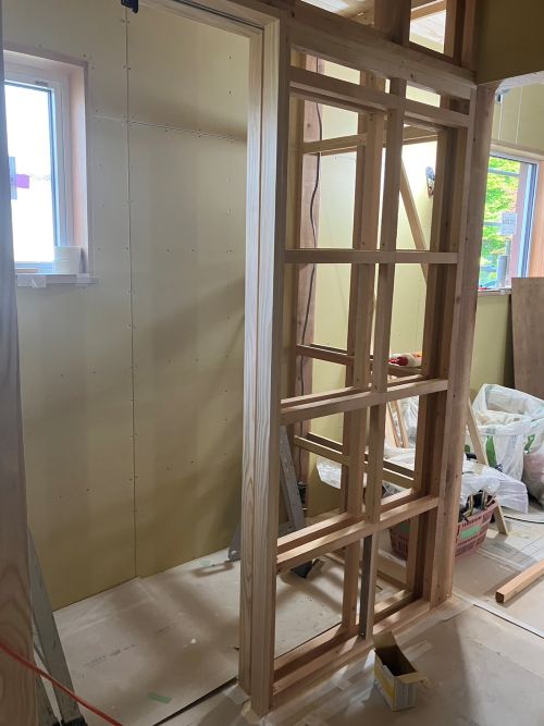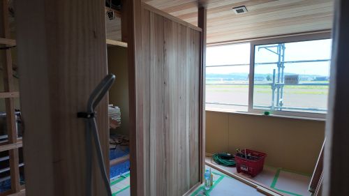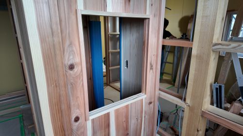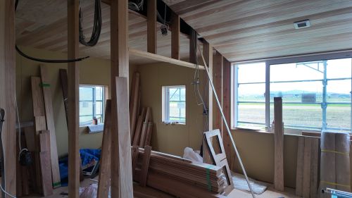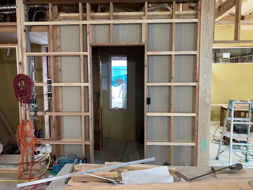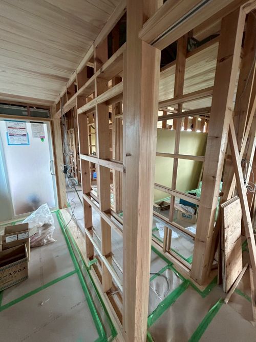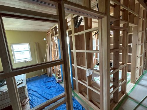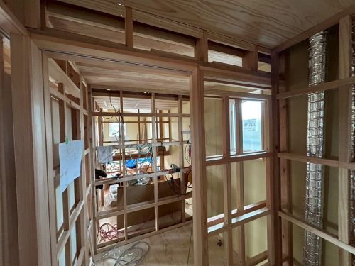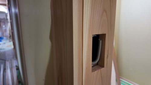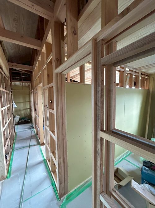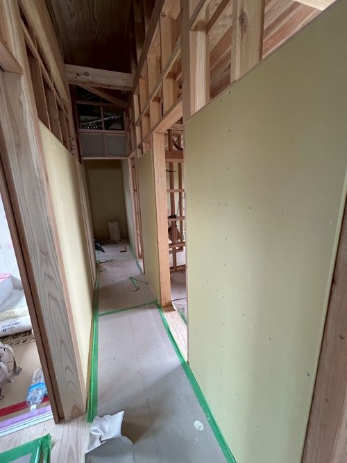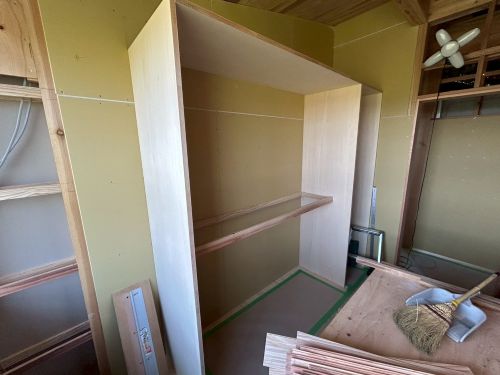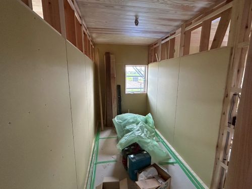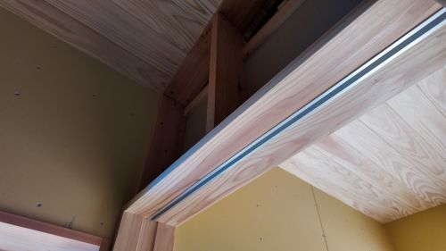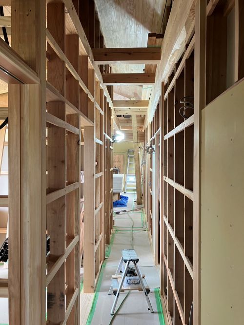 間仕切り壁が進みました。建具の金物も取り付けられてきました。