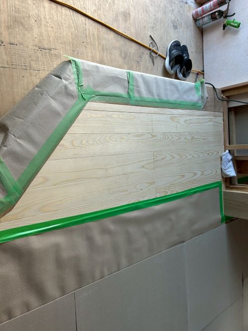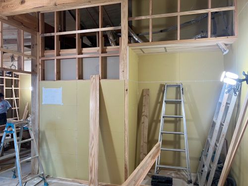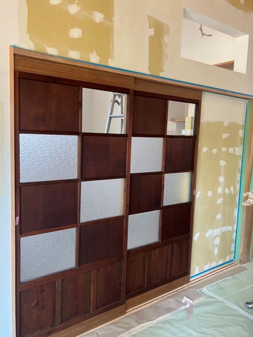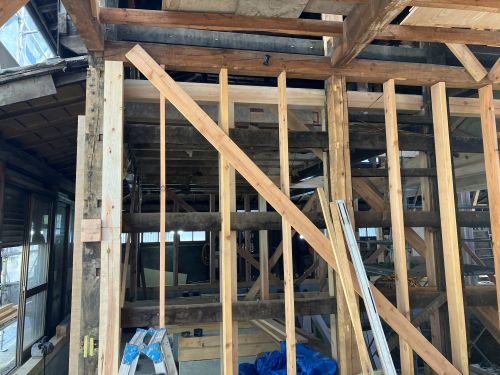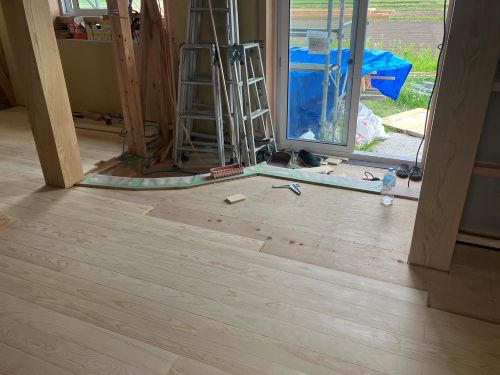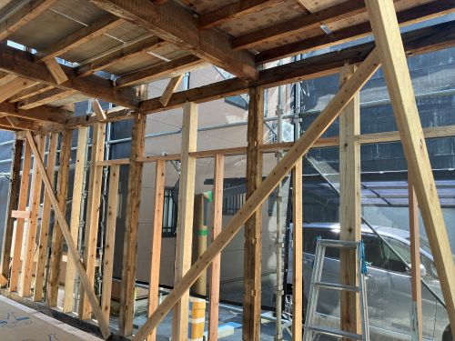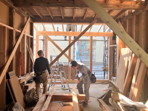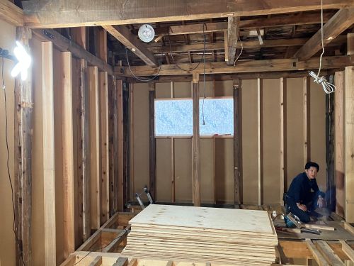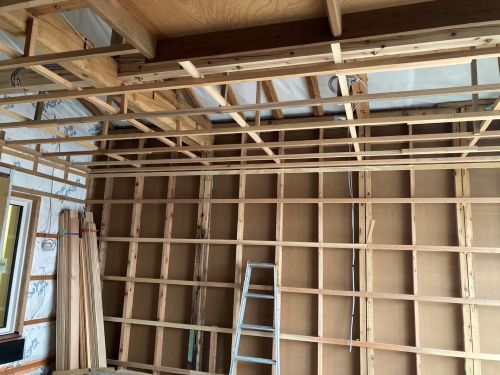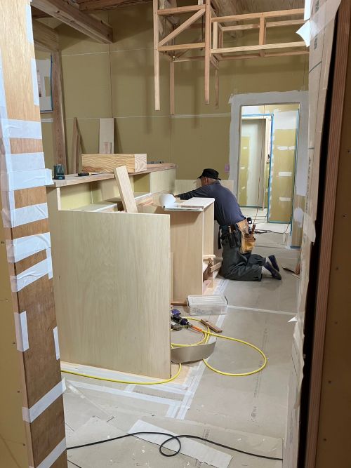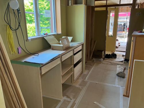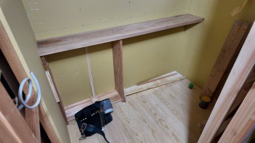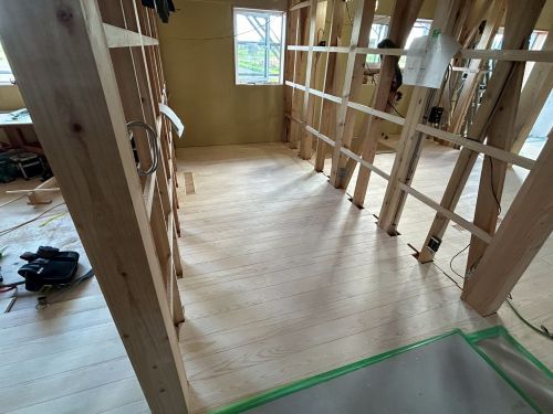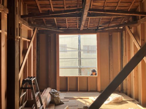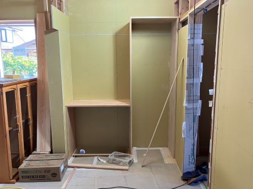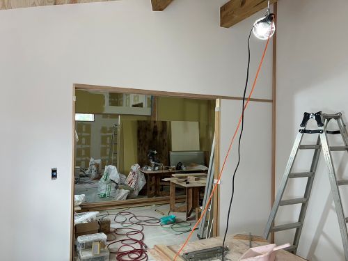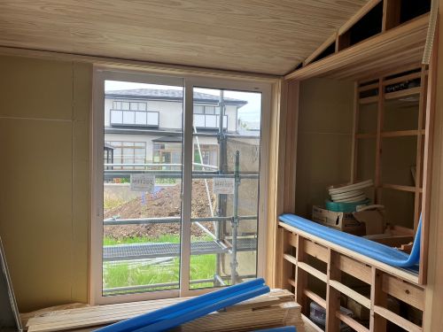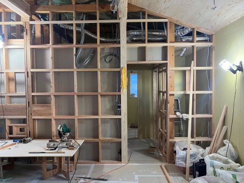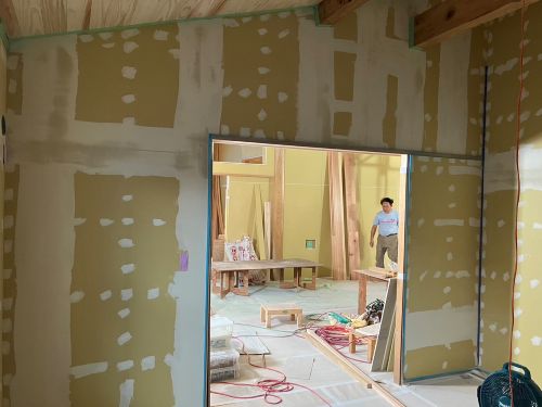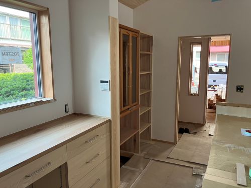 間仕切り壁が進みました。建具の金物も取り付けられてきました。