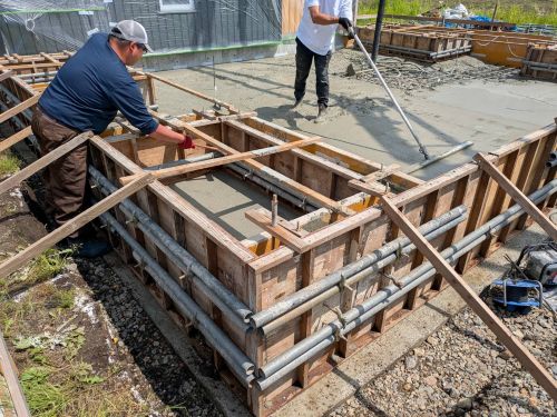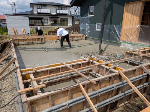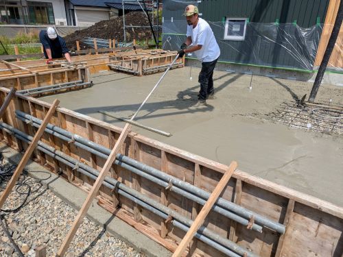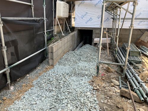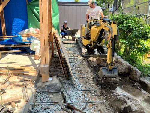 奥側の隣地との境に越境していた部分の基礎の作り直しを進めています。