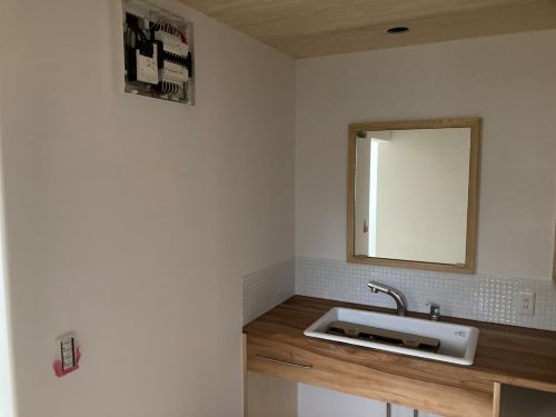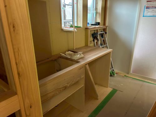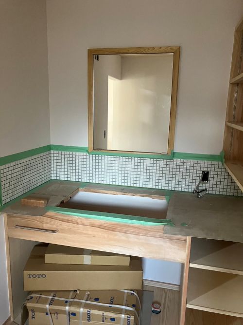 造作工事も進んでいます。まずは造り付洗面化粧台です。