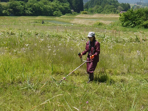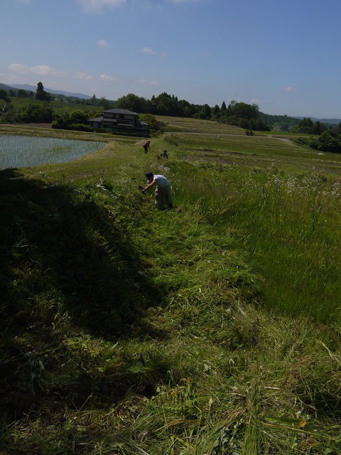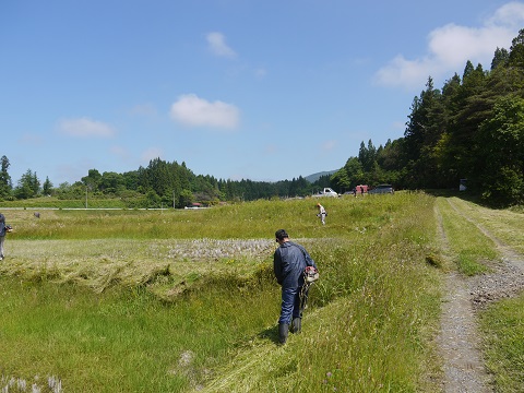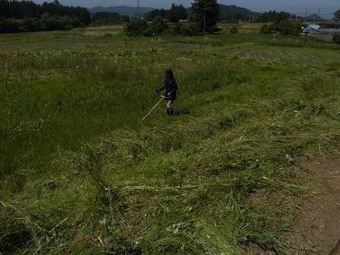 他の皆は機械でガンガンと刈るのですが、府金君は手鎌で一人猛烈な勢いで草刈りしてました(笑)決していじめではなく、率先してがんばるのです!