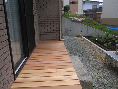 和室の掃き出しサッシ前に濡れ縁ウッドデッキのご注文をいただきました。使用材料はセラカンバツの木なので、雨や雪に強く腐食しにくい良材です。