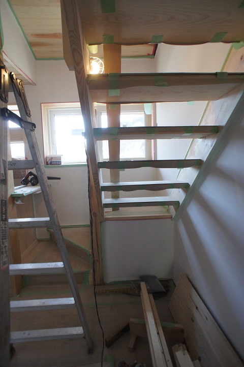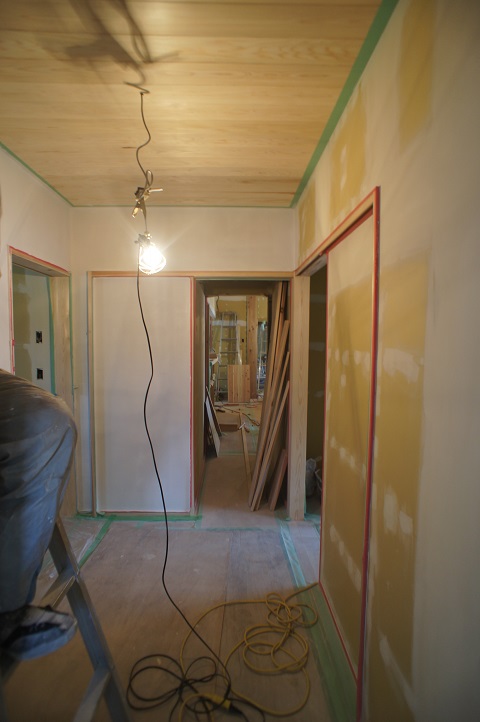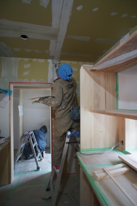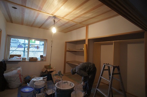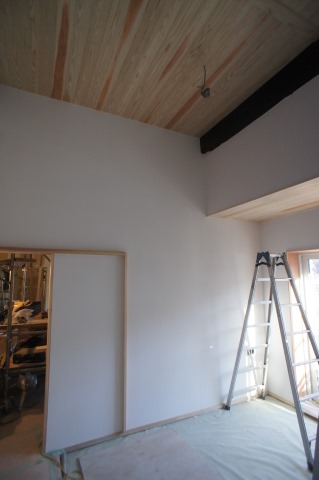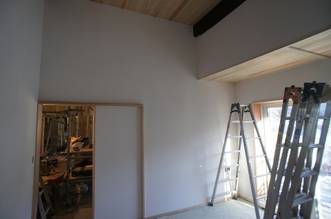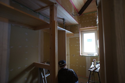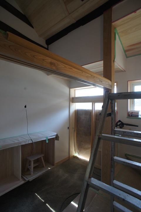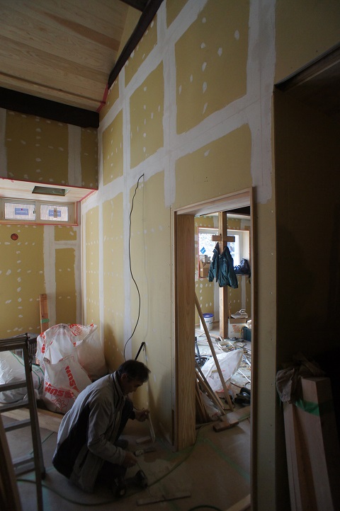 大工造作も最後の一幕を迎え、内装もほど良く進んで完成が間近です。電気工事も同様に進みました。
