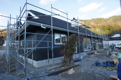 矢作の移築大改修現場の進捗状況です。外壁が昨日でほぼ張り終わり、残りの役物部材の取付を残すだけとなりました。
