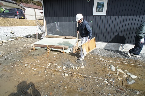 昨日の陸前高田は物凄い強風だったそうです。でも、こうして無事浄化槽工事の段取りが進みました!有資格者さんに着手前の現場確認の写真を写していただきましたので、来週5日から工事が始まります。