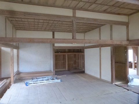 天井を取り外すと、屋根を支える柄と母屋が露わになりました。