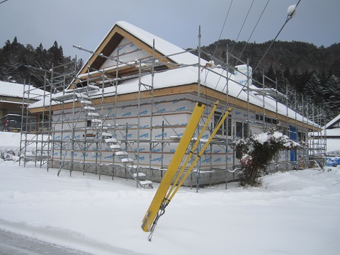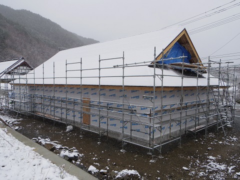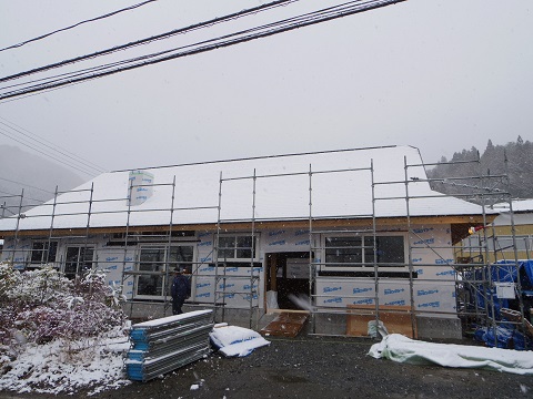 年末、床下地まで進んだ大改修現場です。盛岡よりも雪深く20センチの積雪との事でした。