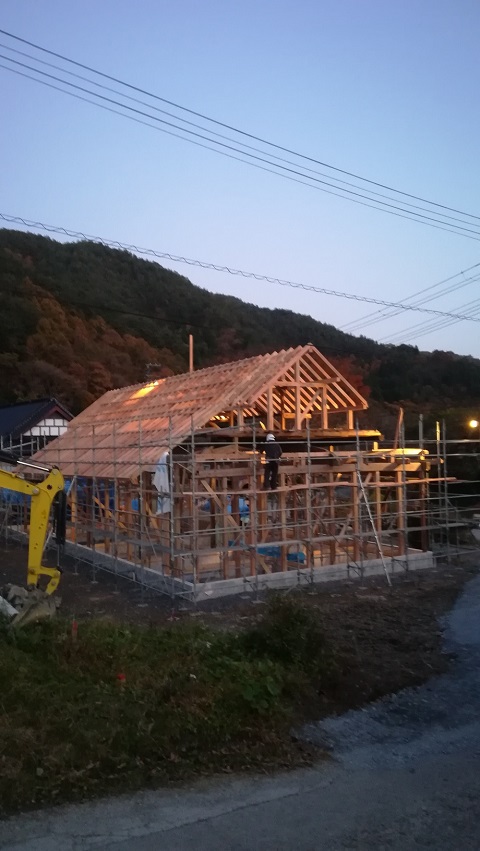 矢作の現場は無事屋根が葺き上がりました。急勾配なので皆の脚がガクガクブルブルだそうです。申し訳なく思っております。