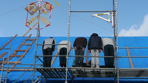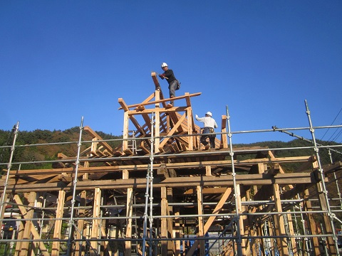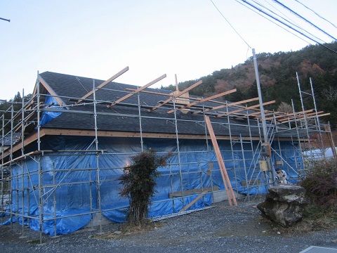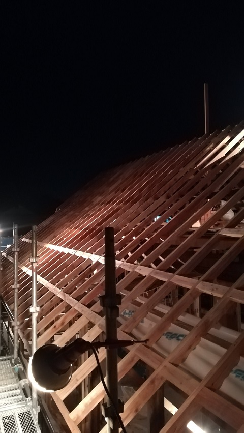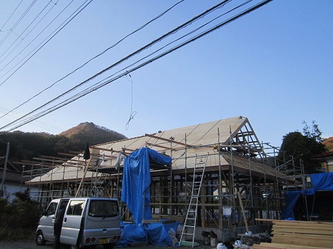 気になる矢作の屋根工事経過です。高い所で作業している大工さんは何時見てもかっこいいです。