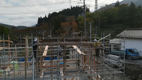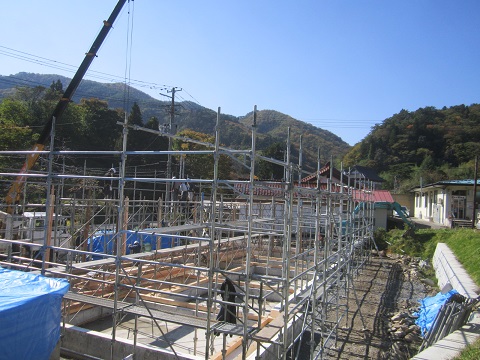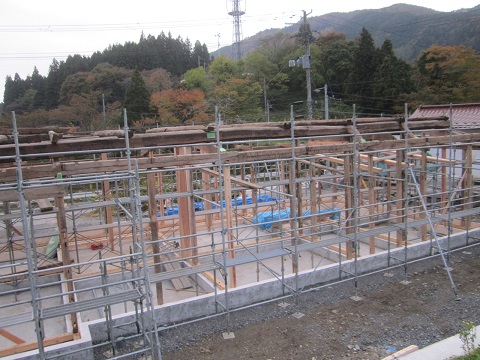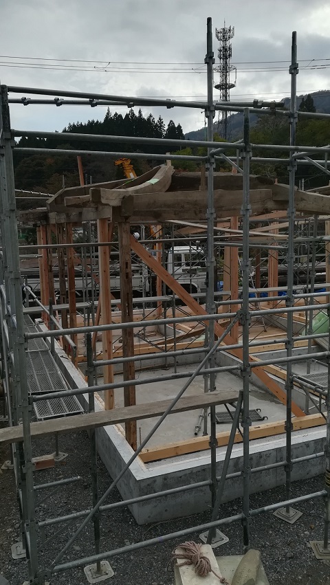 足場も組まれて、よいよ明日ぐらいから、建て方がはじまります。