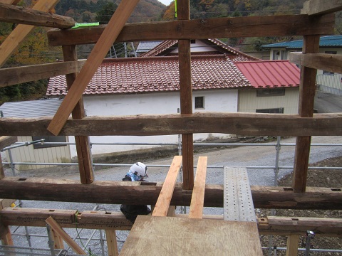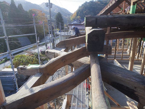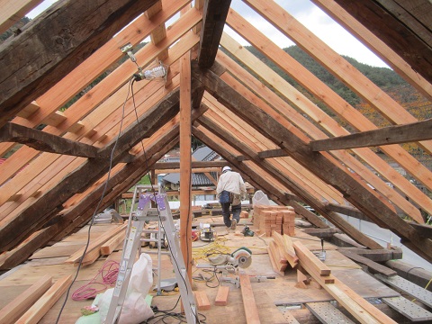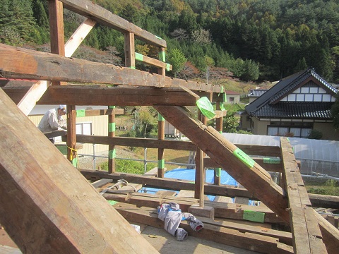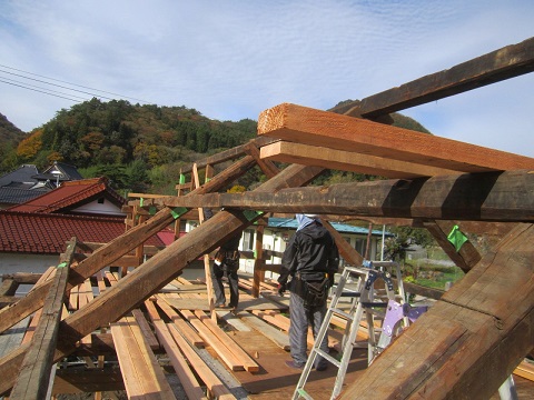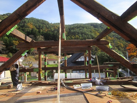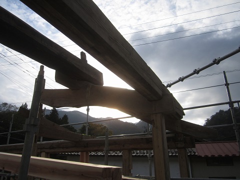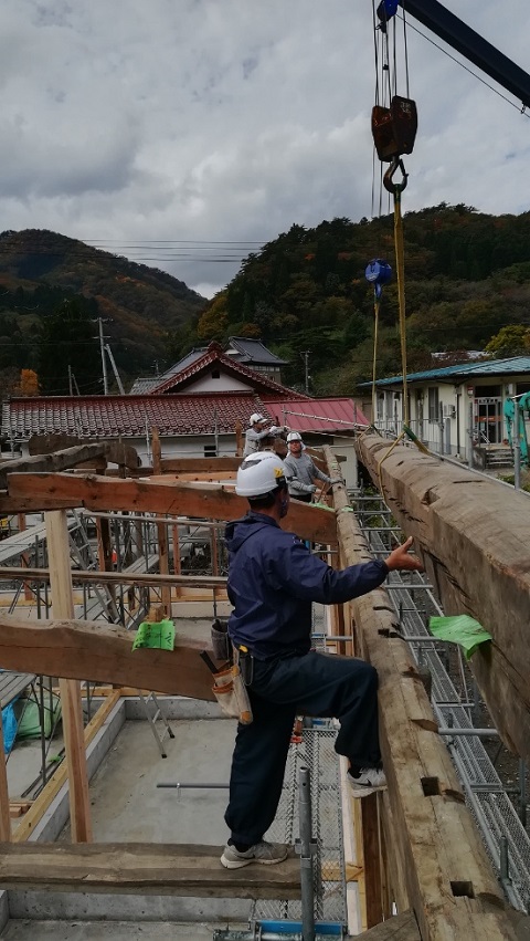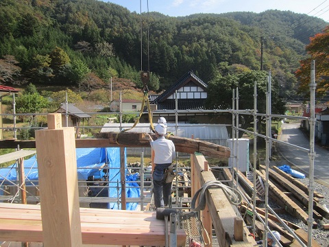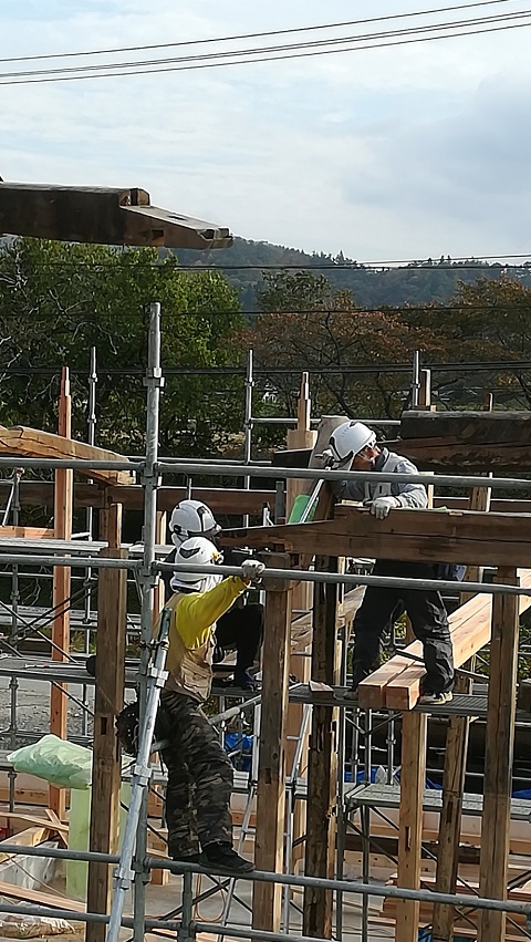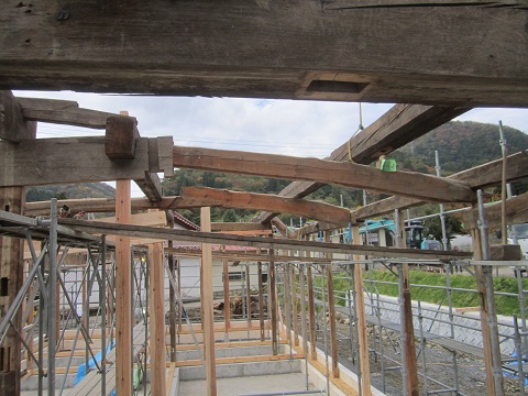 建て方がどんどん進んでいます。元の木組みを捨てないでこうして生かすことは、言葉ではなく、このように組み上げられた時にその良さが現れると思います。