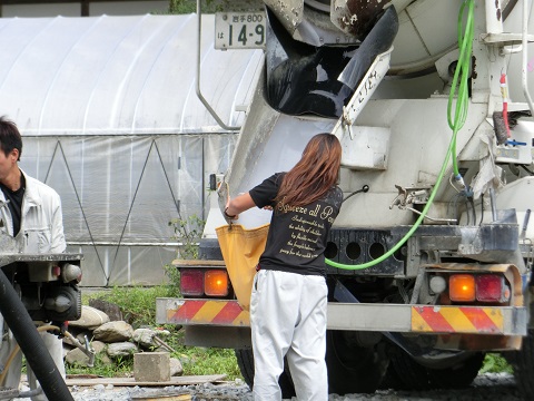 先日コンクリートの打設完了したのですが、生コン車のオペレーターは女性でした。女性活躍社会を応援します。