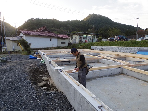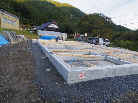 大変お待たせしてしまいましたが、いよいよ建て方に向けて準備が進んだ矢作の移築大改修工事です。まずは、基礎枠を取り外して、外周部の整地を進めました。大工さんは、好摩で土台の準備に取り掛かります。