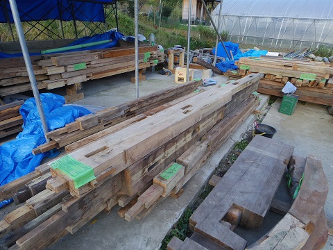 構造本体は、一度分解解体して、取り置き再度構造材として再生します。ただ、腐食の激しい土台などは新たに取り替えて建込します。現在はその準備なので、建て方開始はまだ先となります。