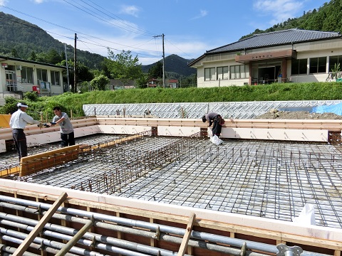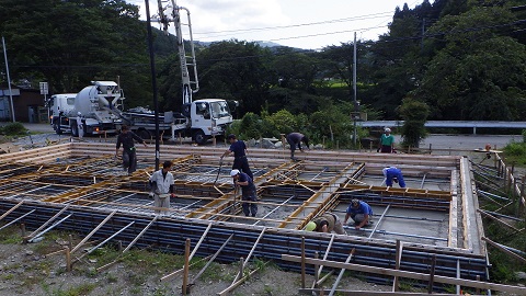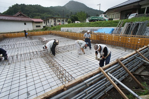 陸前高田市の矢作地区での移築大改修の基礎工事は配筋が進みました。30代の大工さんたちが、多能工化しておうえんしてくれています。