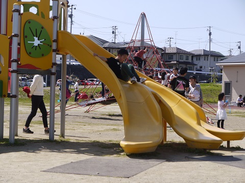 公園の遊具も大人気です。駐車場も広いし、公衆便所も三か所もあって、家族で遊ぶにはとってもいいところです。