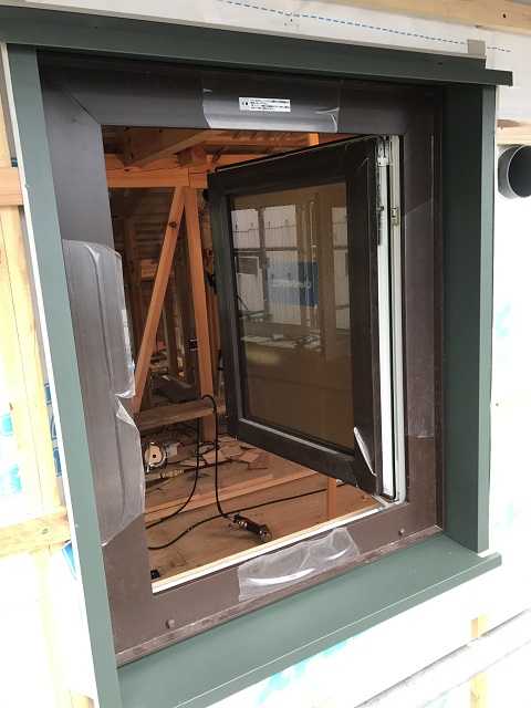 外壁工事共々、外窓枠工事も進みます。元々カラー樹脂サッシなのですが、これでワンポイントUPします。