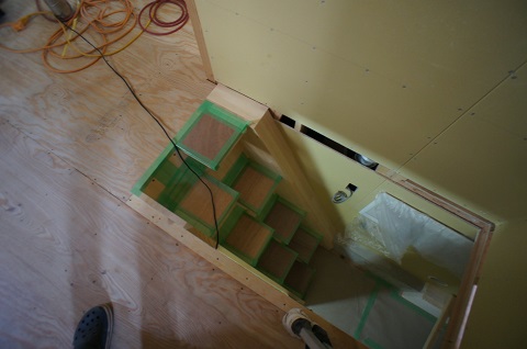その脇では階段の取り付けが行われています。