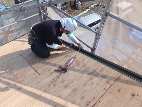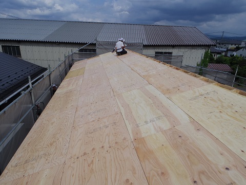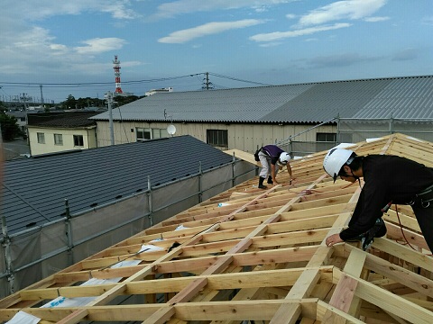 小屋組みが完了したので、屋根工事に取り掛かりました。