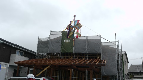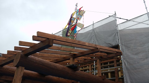 青山駅前の新築工事では昨日、上棟式が行われました。