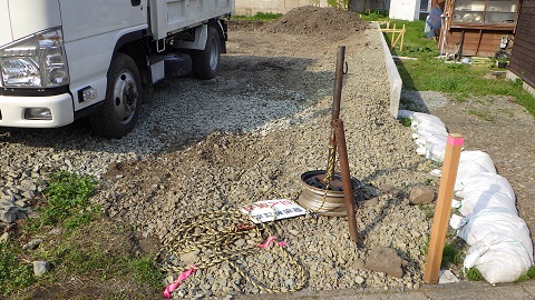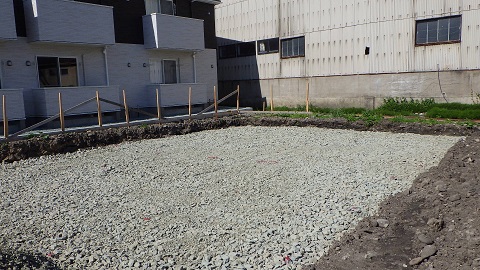 昨日までの黒土状態の写真を見て、「車の乗り入れでタイヤが嵌まったら困るぞ!」と電話した私への返しは「まだ届く写真があるので、社長はそれをみてないでしょう!」との反論でありました。今日これを見れば確かに入り口部分など砕石を敷き込んで固めてあるようです。現場写真を見ながら毎回気が付くことを指摘しています。全ては現場で自ら体を使って働いてきた経験が基にあります。今の若き現場監督にはもっと汗を流して職人と一緒に働けと言いたくなりますね。頭ばかり資格ばかり大きくなっても本当の生きた仕事は出来ないものです。心配りが大切なのです。人生も同じですね!