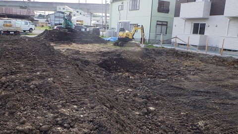 重機2台で基礎根伐りを進めています。新車重機も中古重機も頑張り屋さんですね♪